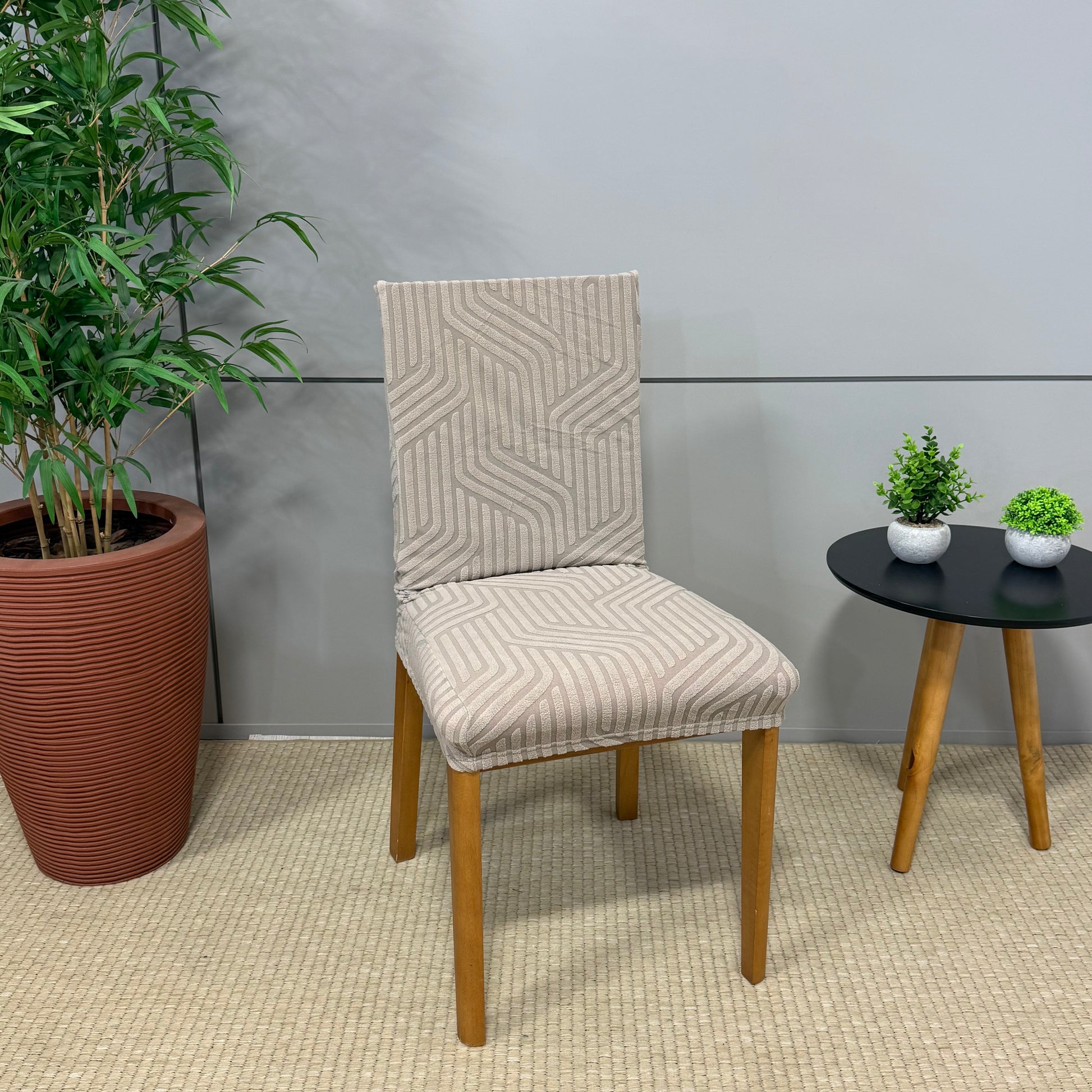 Capa de Cadeira Alto Relevo Linhas Geométrico Soft- Bege