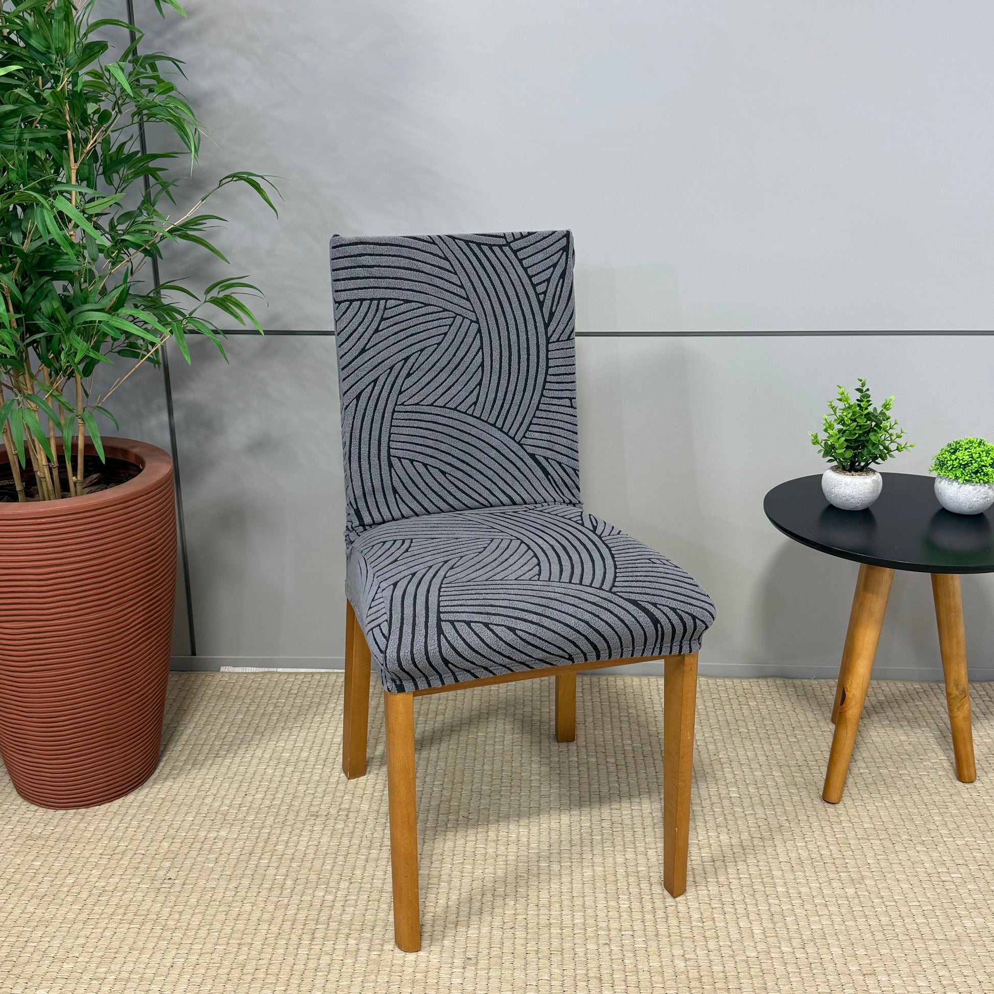 Capa de Cadeira Alto Relevo Linhas Onduladas- Cinza Escuro