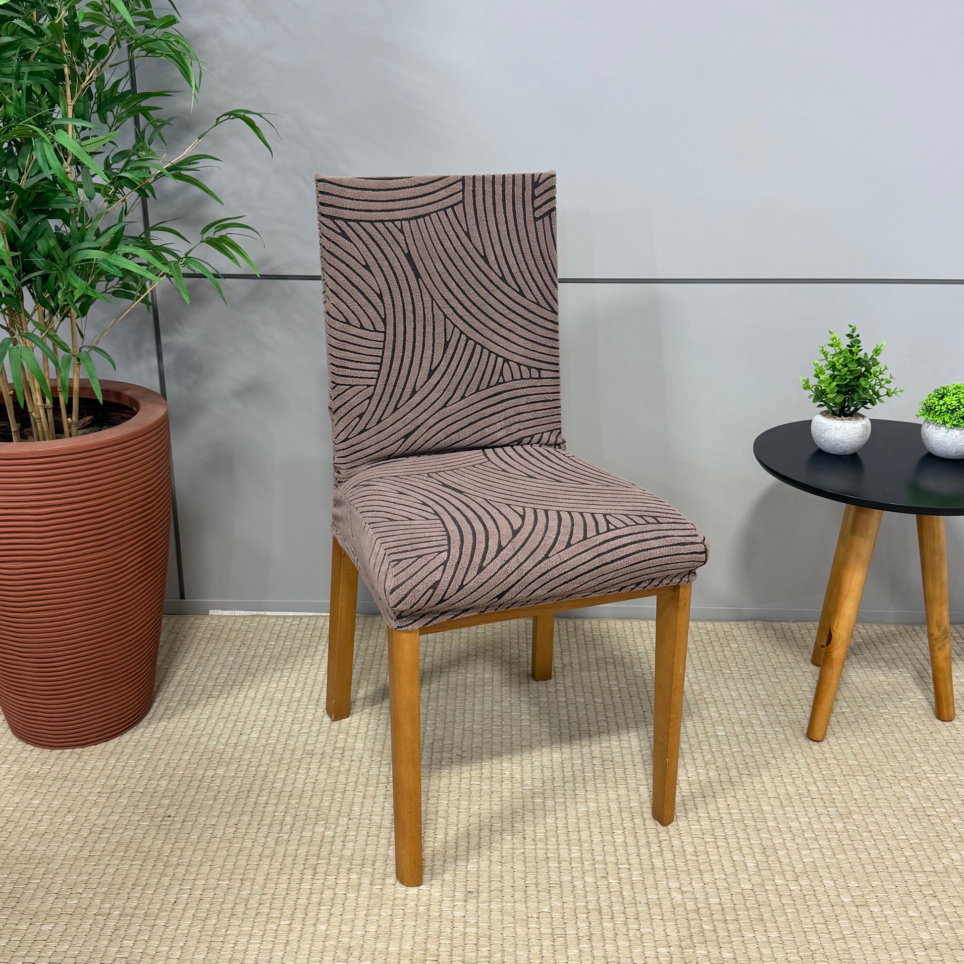 Capa de Cadeira Alto Relevo Linhas Onduladas- Marrom