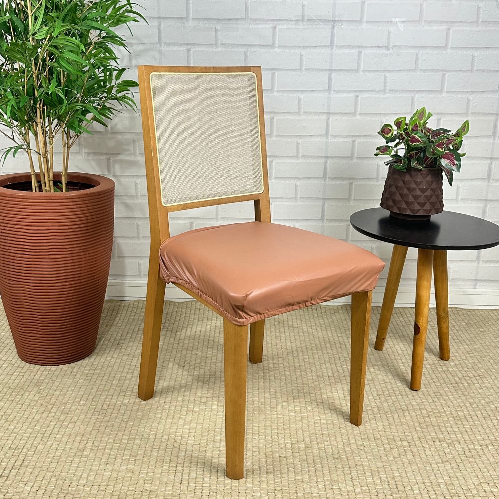 Fabricada com material de courino importado, esta capa de assento para cadeira é à prova d'água, impedindo que manchas de água e líquidos que mancha suas cadeira. Sua remoção e limpeza são facilitadas, proporcionando praticidade no cuidado. Ideal para renovar suas cadeiras antigas e danificadas, a capa confere-lhes uma aparência sofisticada. Devido às características de nosso courino importado.