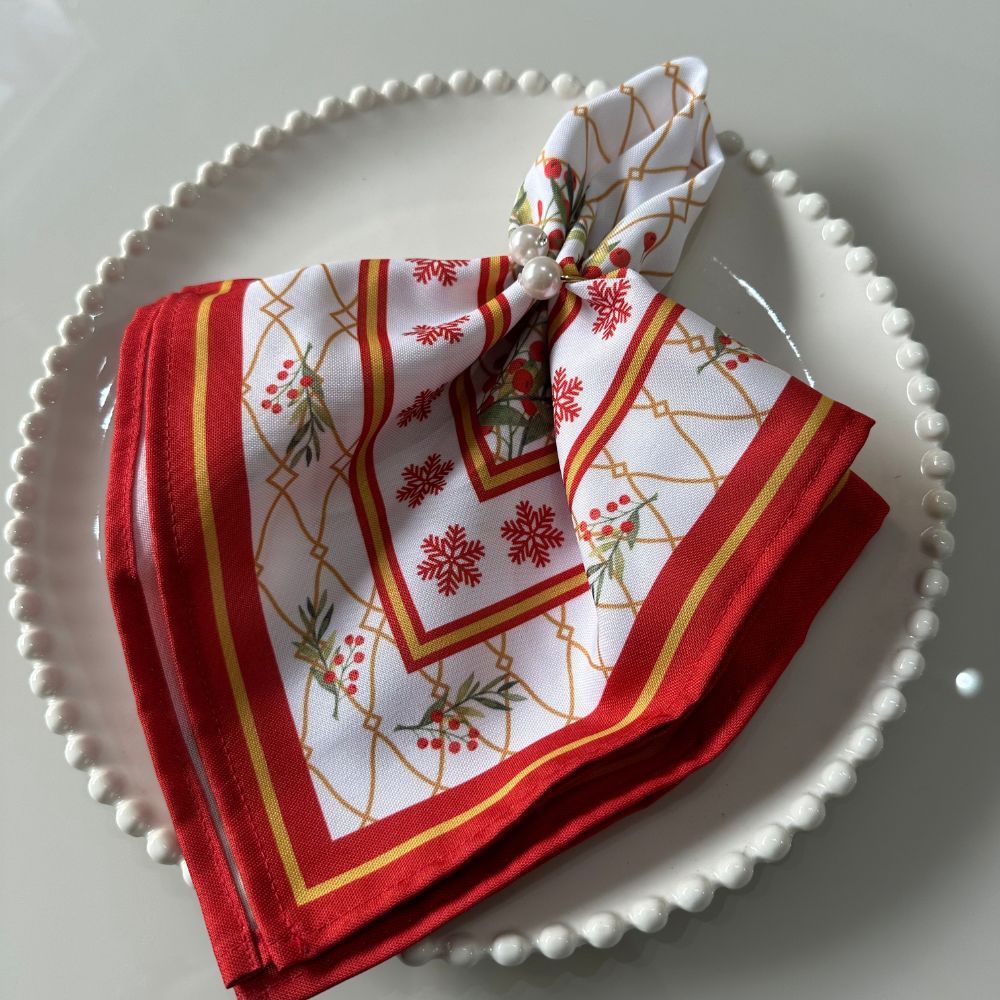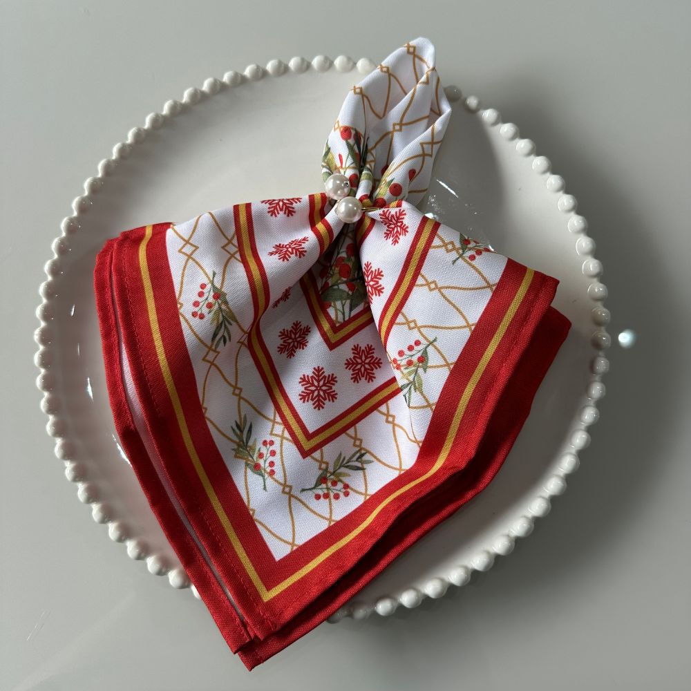Surpreenda seus convidados com uma mesa decorada com cuidado e tradição. Adquira o Guardanapo Natal – Azevinho e transforme sua ceia em um momento exclusivo de elegância e espírito natalino!