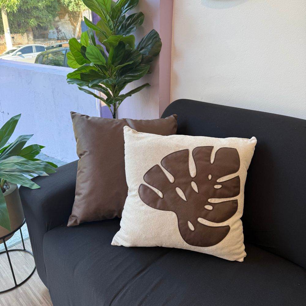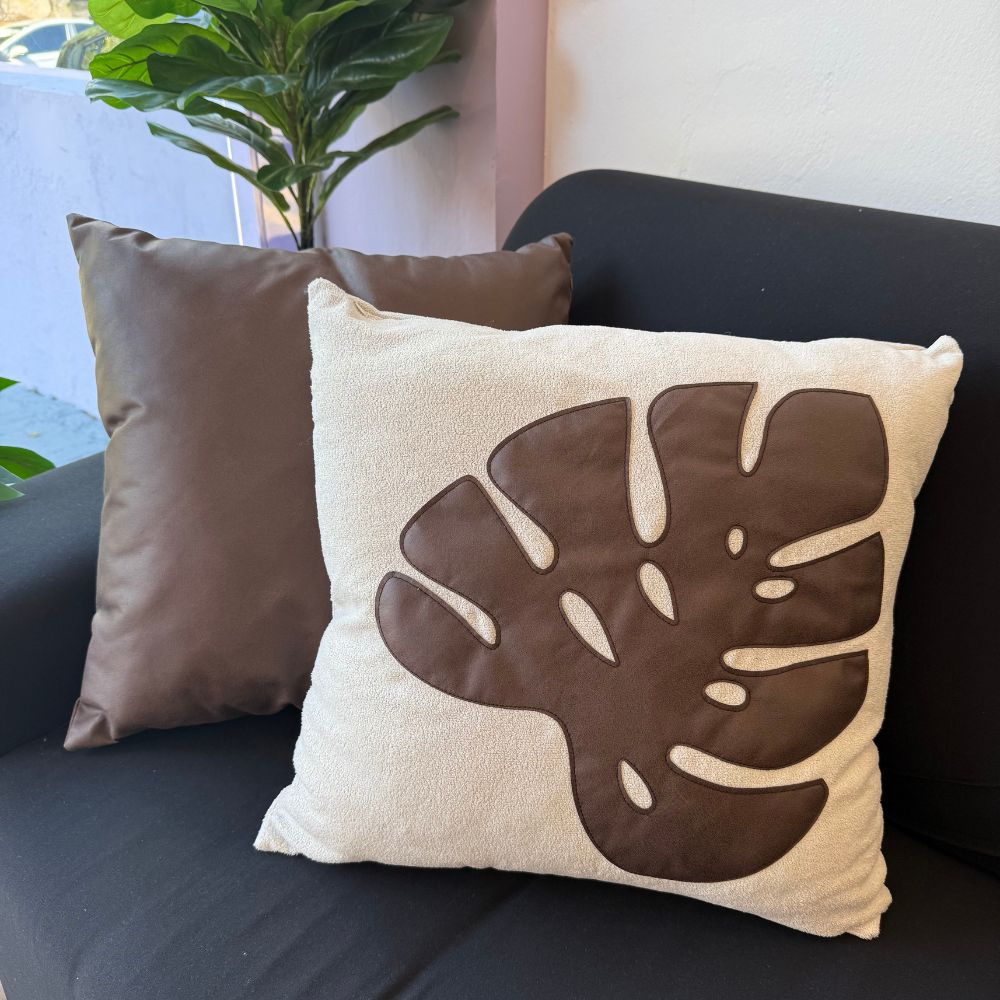 Kit 2 Capas de Almofada Folha de Adão- Couro