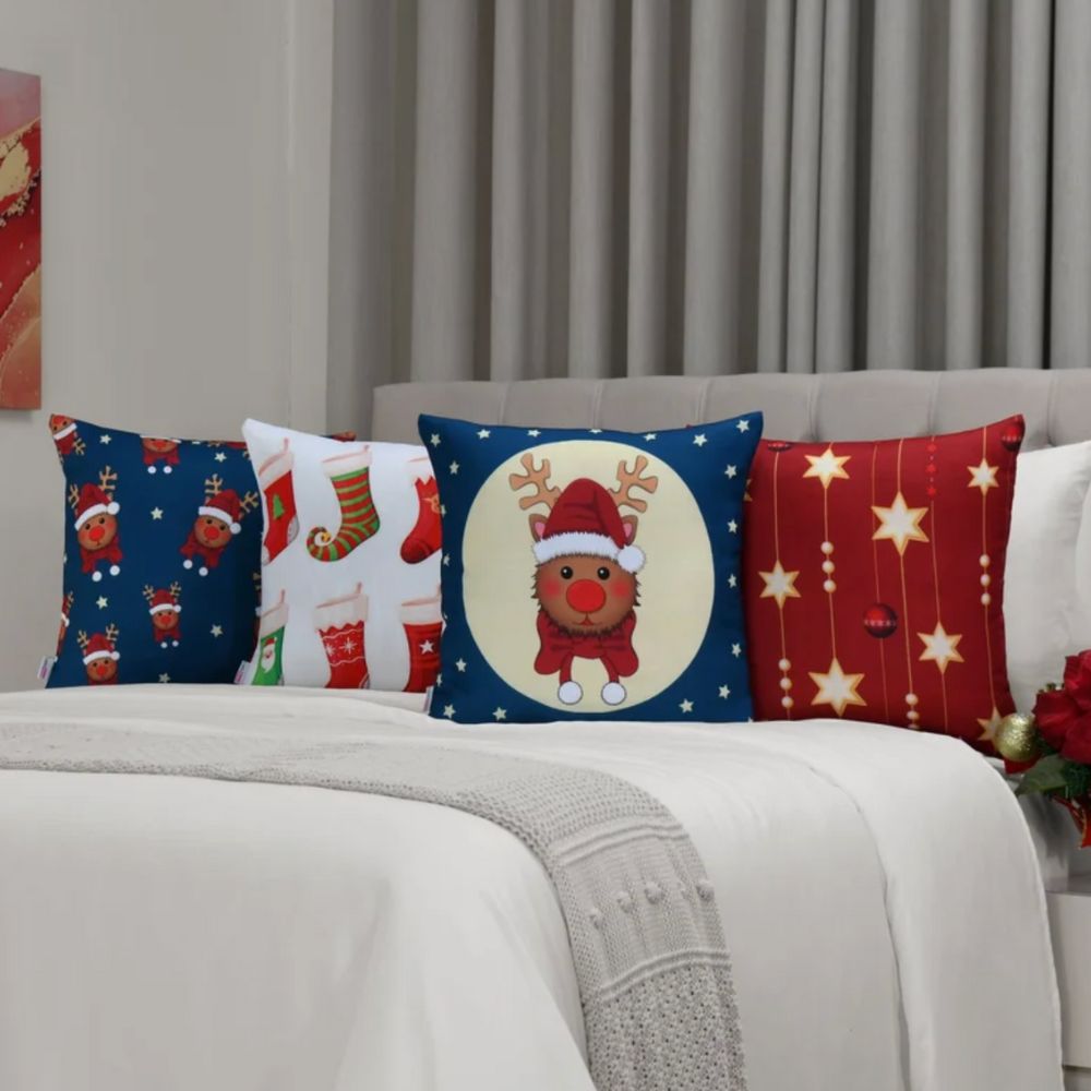 Kit 4 Capas de Almofada - Meias Natalinas