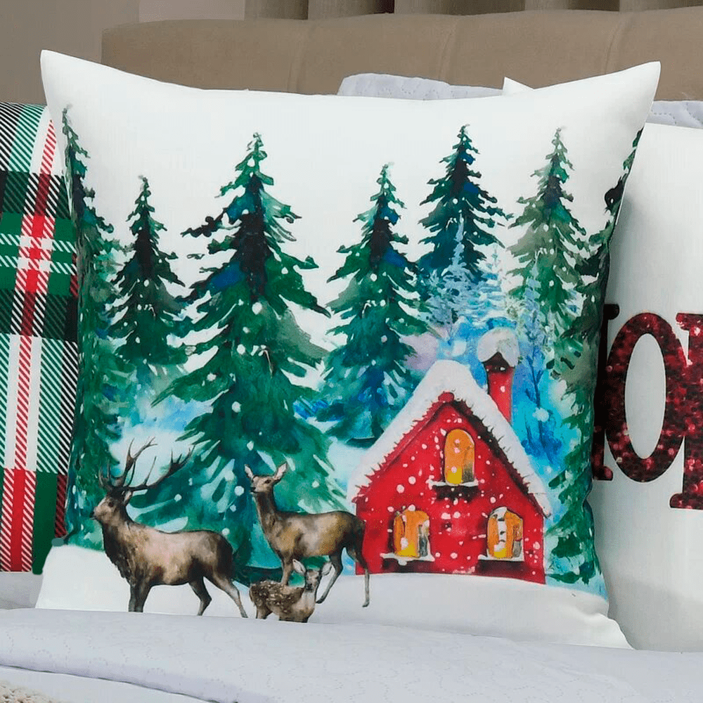 Kit 4 Capas de Almofada - Paisagem de Natal