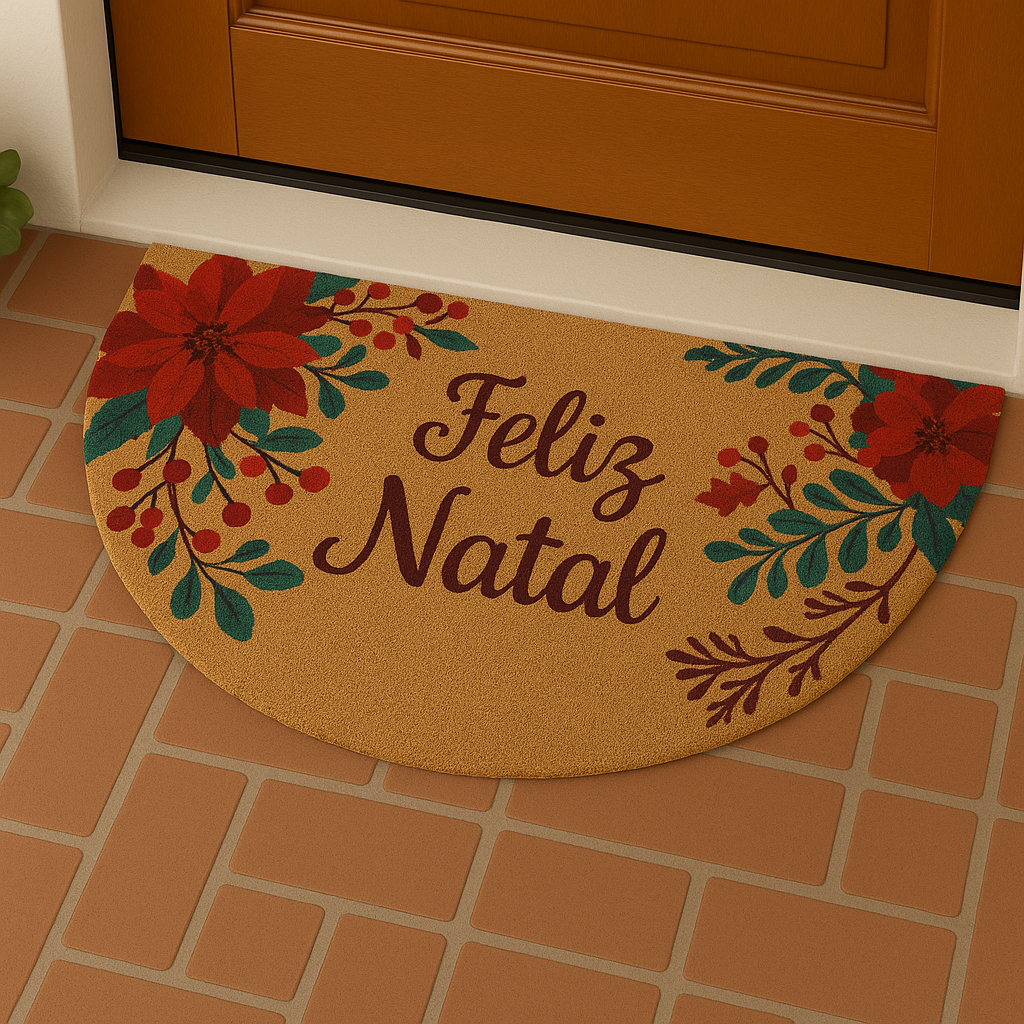 Transforme a entrada da sua casa em um convite cheio de encanto para o Natal! Nosso tapete é produzido com 60% fibra de coco natural e 40% policloreto de vinila (PVC), garantindo alta resistência, aderência ao chão e um toque rústico elegante que combina com qualquer decoração natalina.