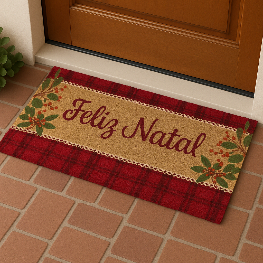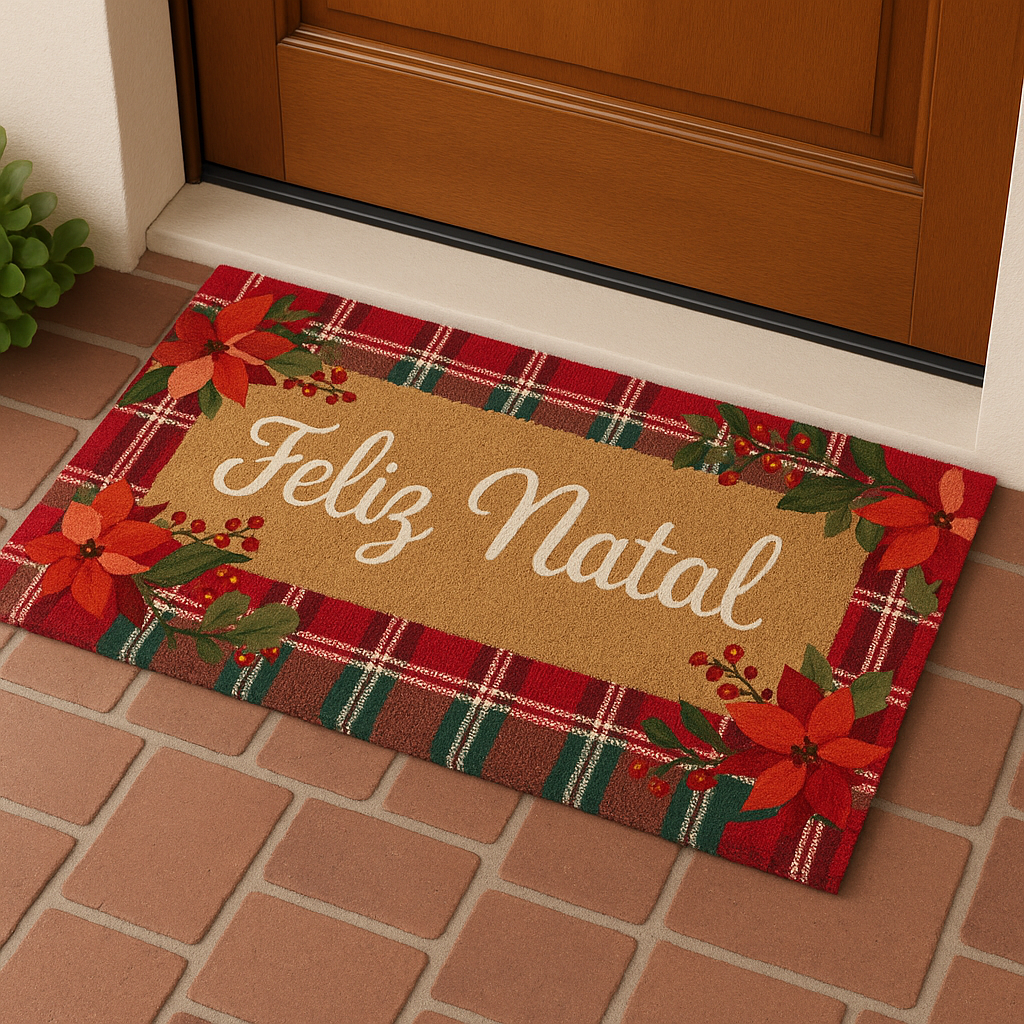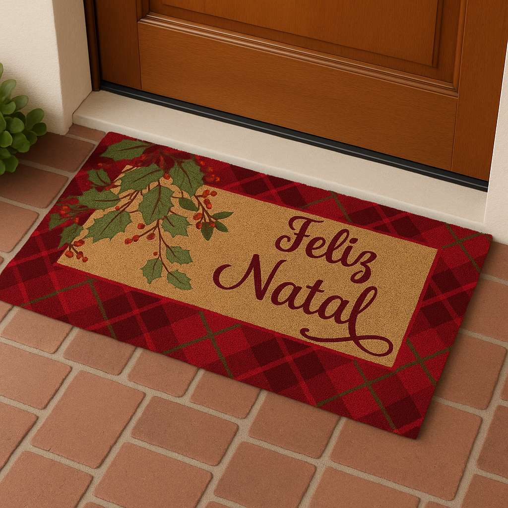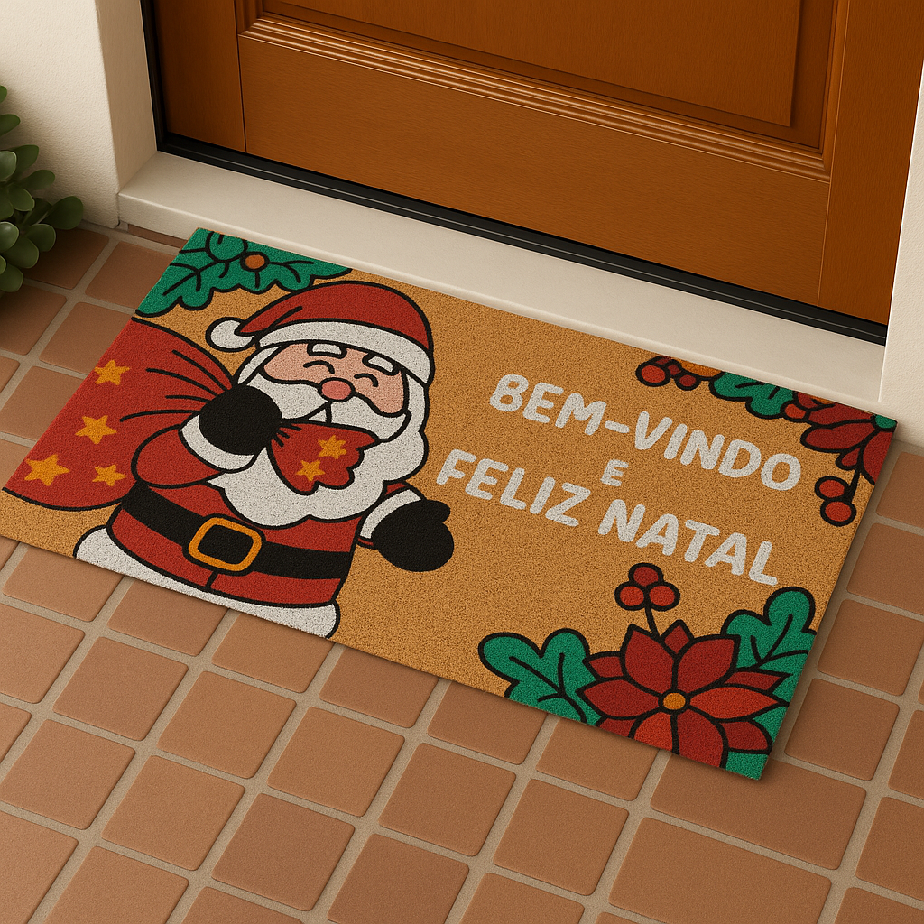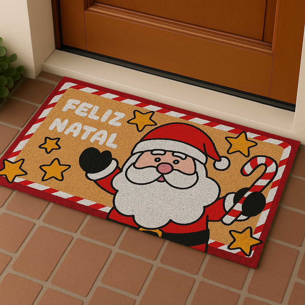 Transforme a entrada da sua casa em um convite cheio de encanto para o Natal! Nosso tapete é produzido com 60% fibra de coco natural e 40% policloreto de vinila (PVC), garantindo alta resistência, aderência ao chão e um toque rústico elegante que combina com qualquer decoração natalina.
