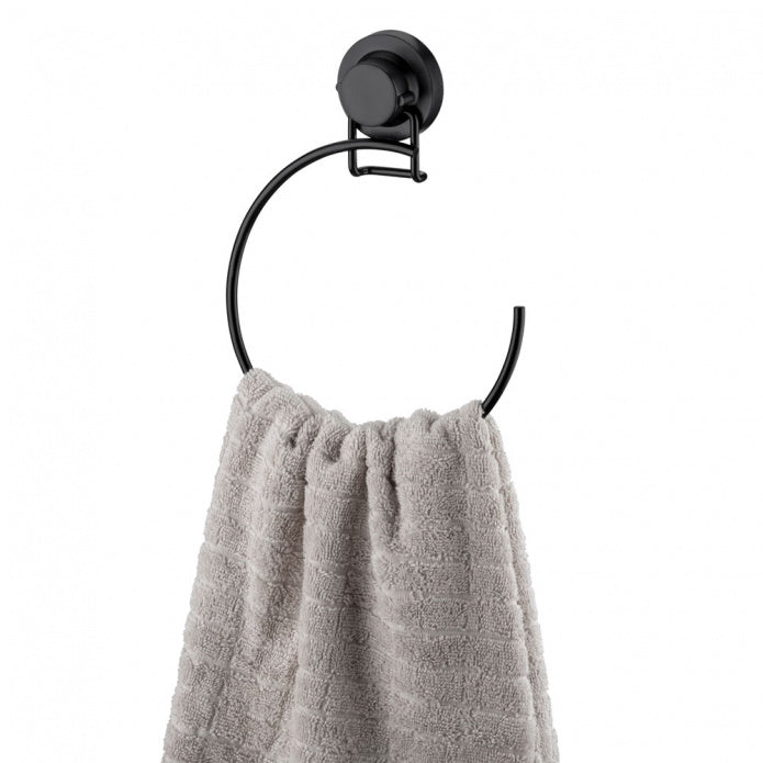 Toalheiro Argola 18cm Com Ventosa - Preto Fosco