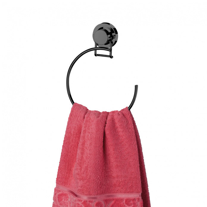 Toalheiro Argola 18cm Com Ventosa - Preto Onix