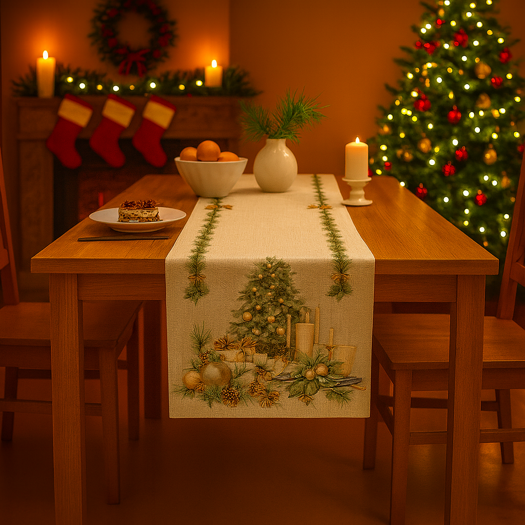 Transforme sua mesa em um cenário natalino digno de revista com o nosso Trilho de Mesa Natalino!